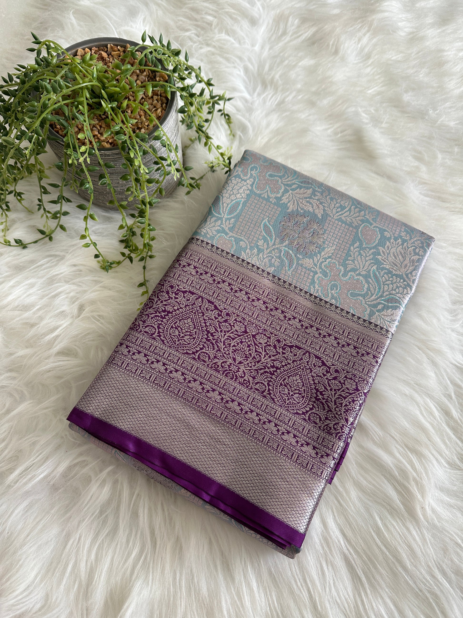 Blue Coral Semi Kanchivaram Tissue Pattu Saree