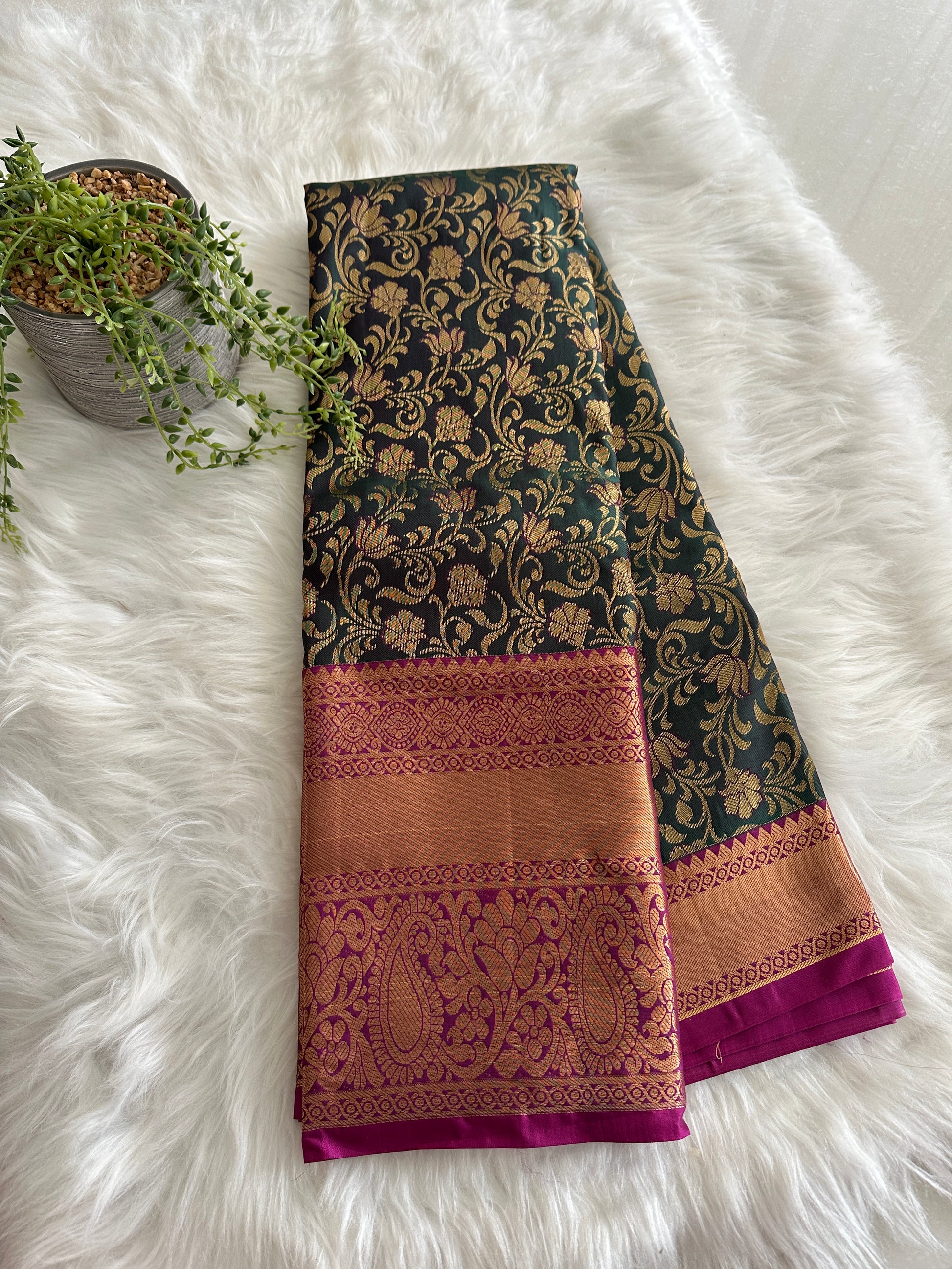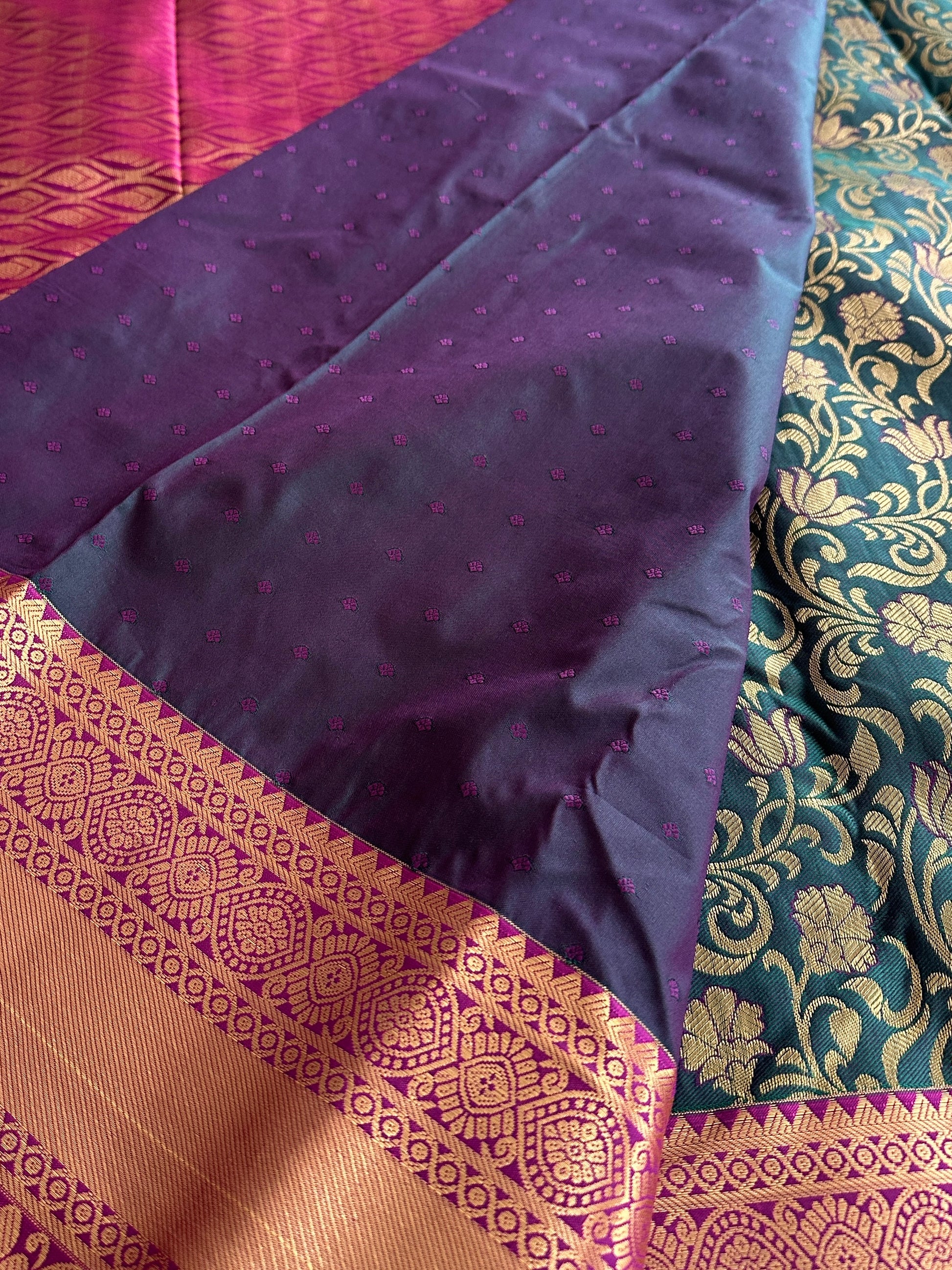 Dark Green x Blue Dual Kanchi Tissue Silk Saree
