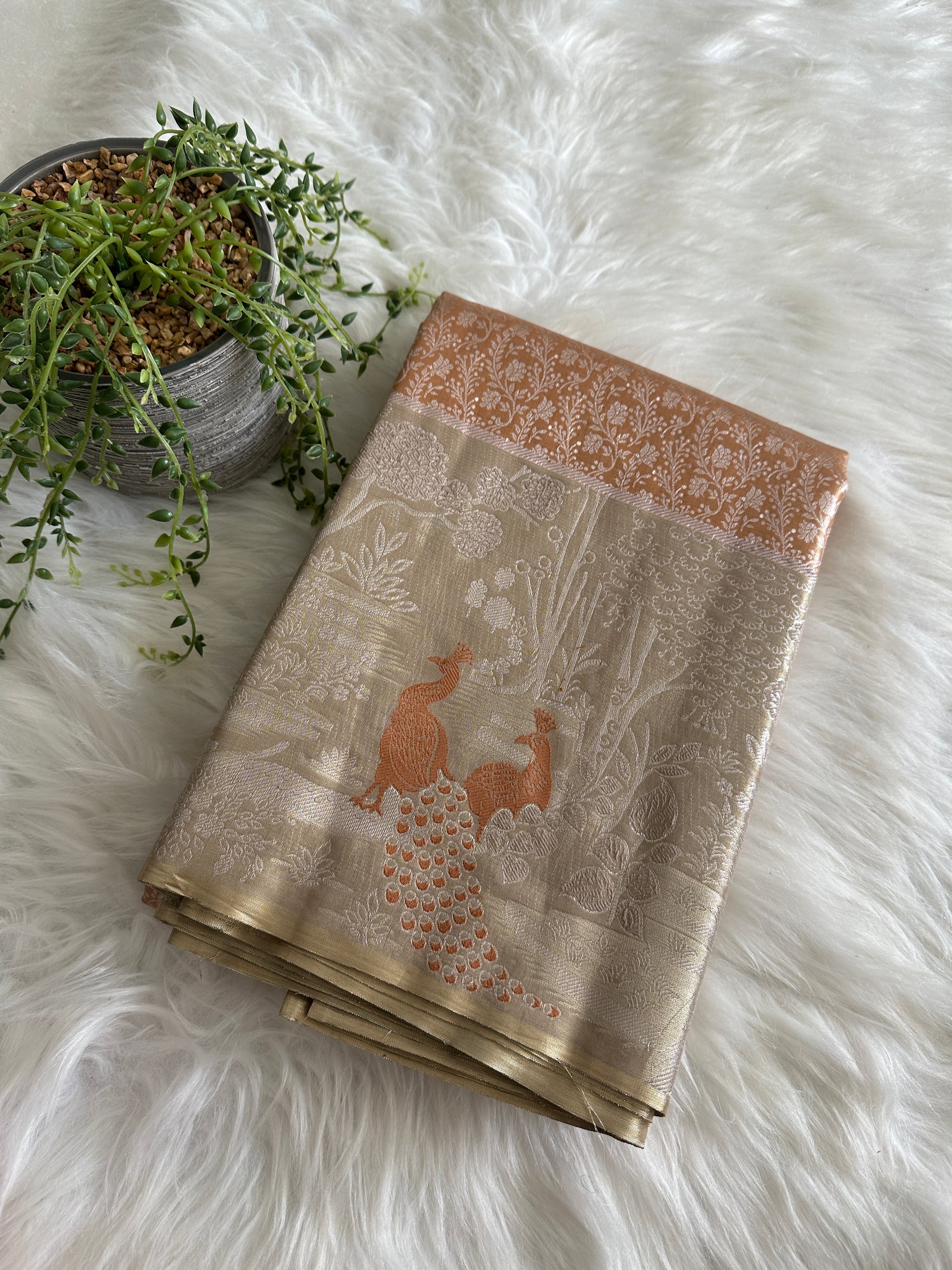 Designer Peacock Semi Kanchivaram Tissue Pattu Saree v1.0