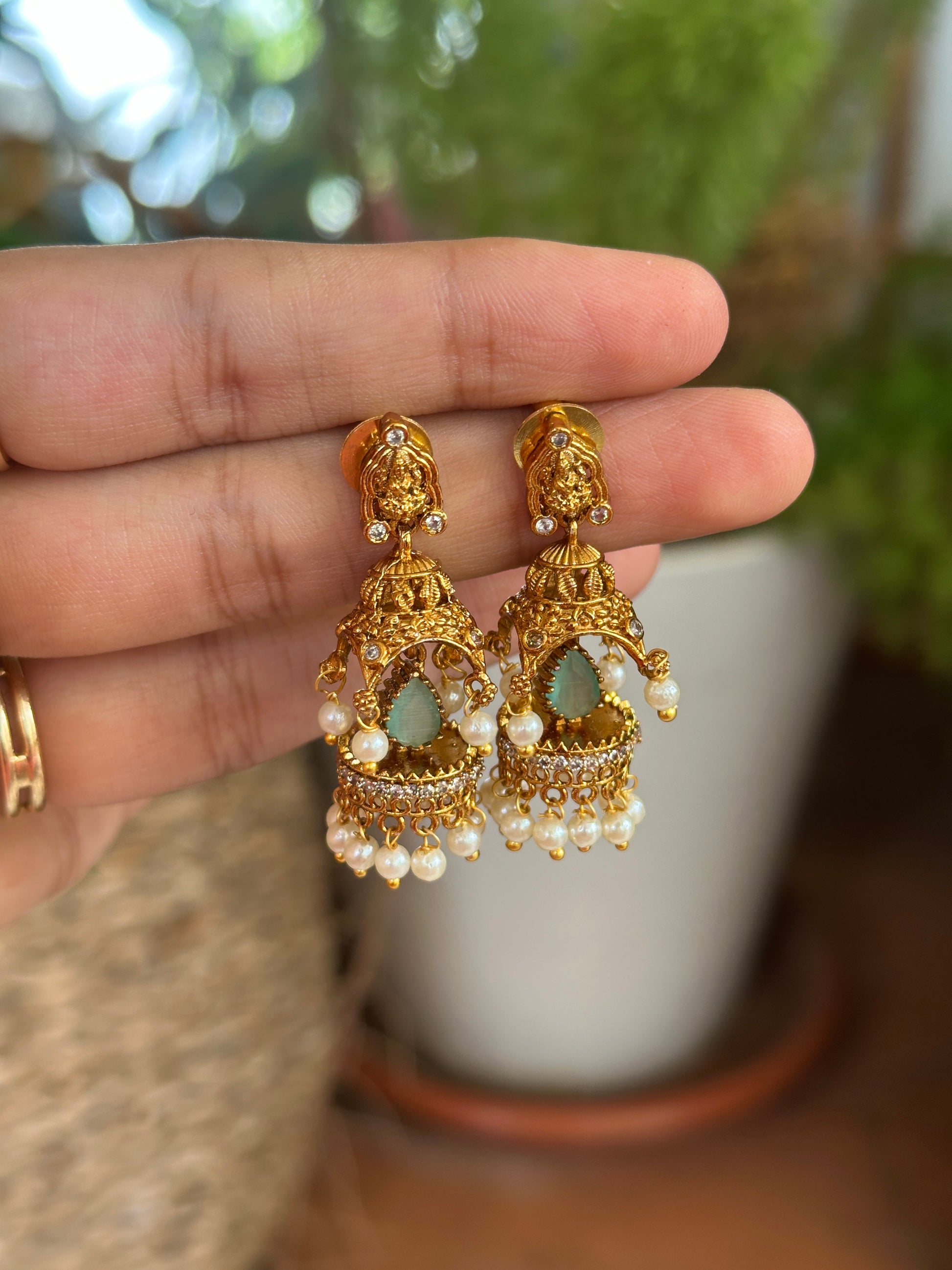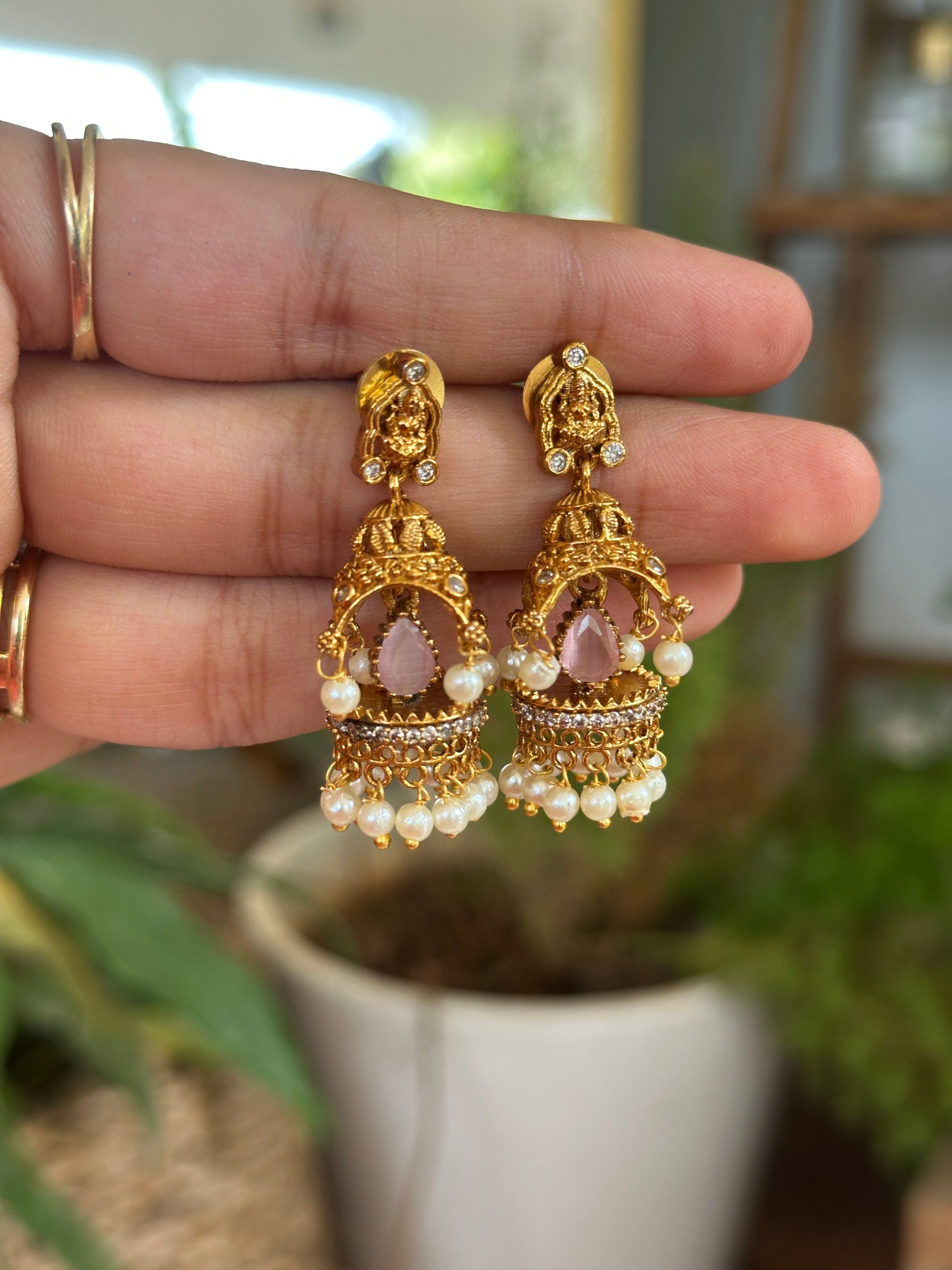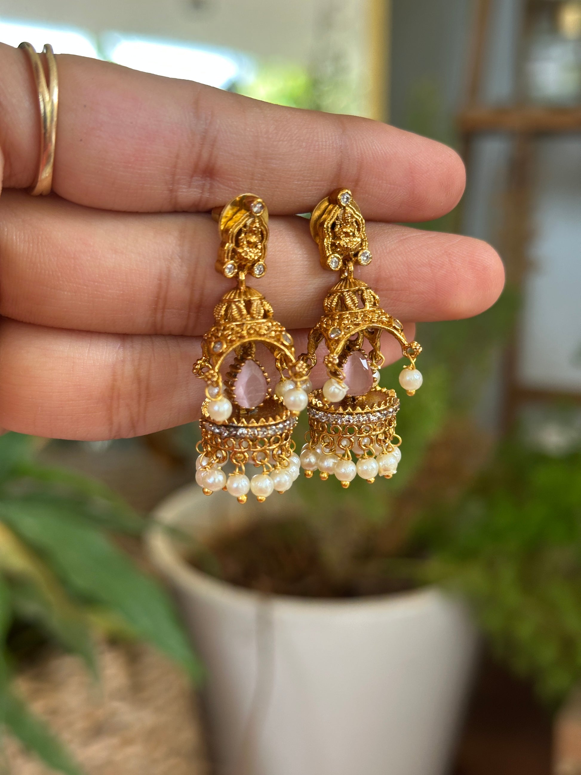 Pastel crystal Mandir Jhumkas