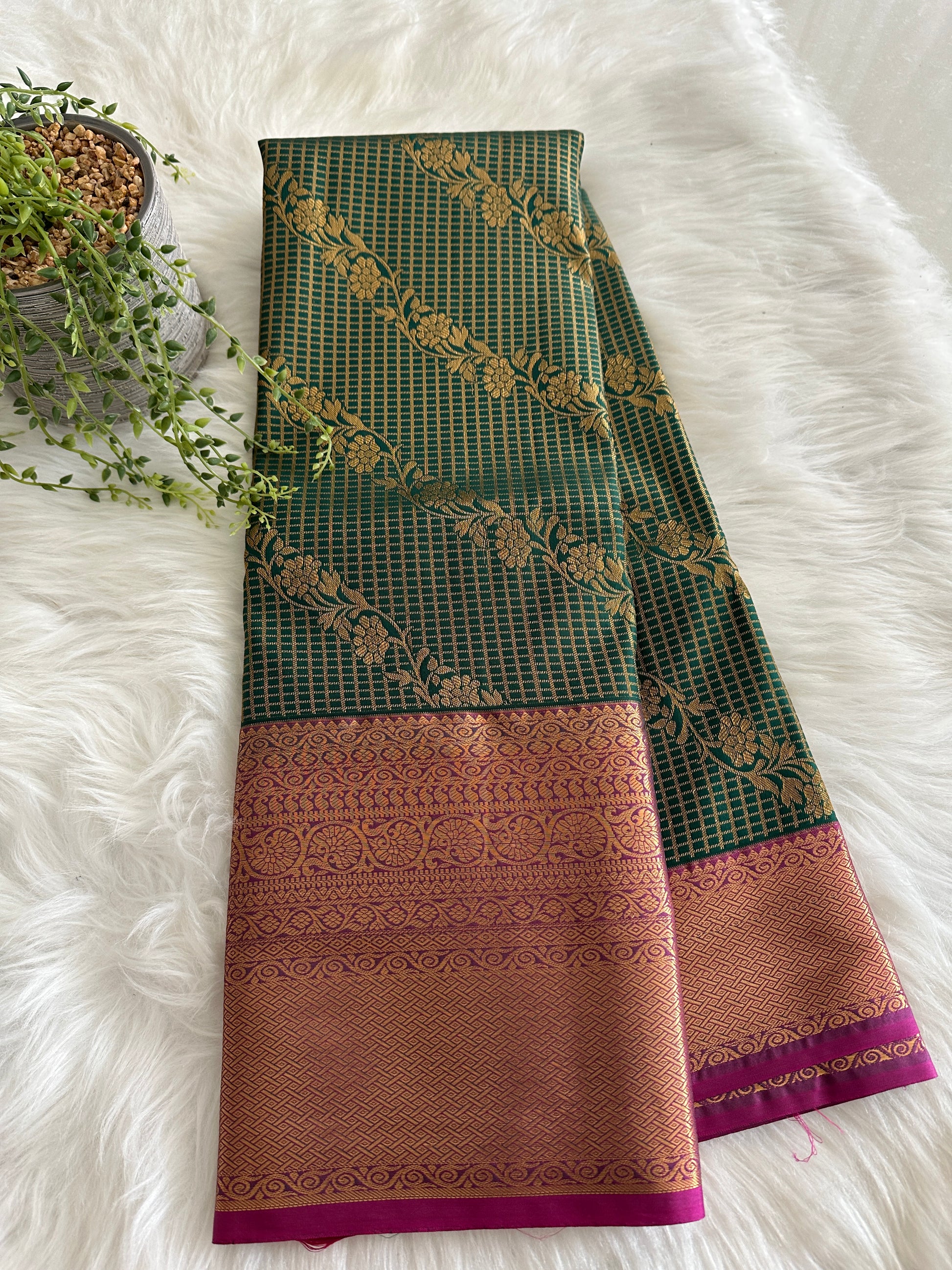 Peacock Green Chettinad Kanchi Tissue Silk Saree